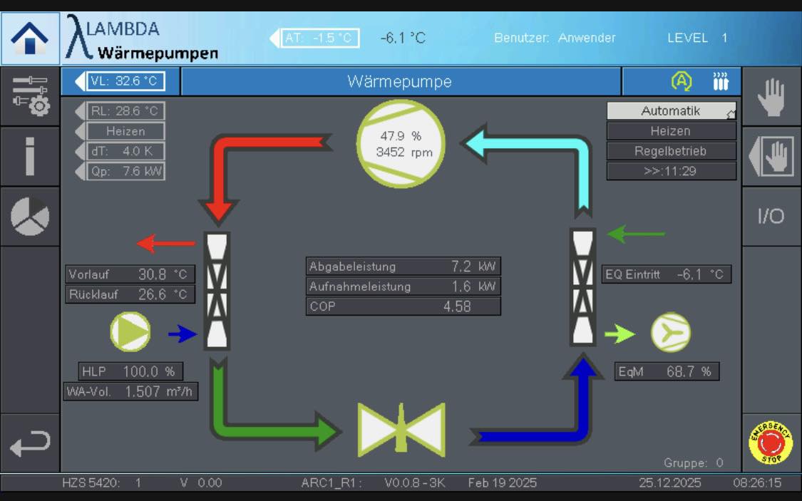 Nach Inbetriebnahme sank der jährliche Energieverbrauch deutlich, und die Heizkosten reduzierten sich spürbar. Durch die individuelle Regelung steuert die Steuerung die Wärmepumpe intelligent, abhängig von Außentemperatur und Warmwasserbedarf. Das System läuft ruhig und wartungsarm, und der Eigentümer profitiert von einer nachhaltigen und zukunftssicheren Heizlösung.